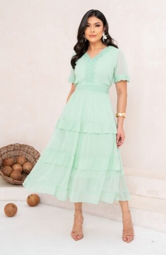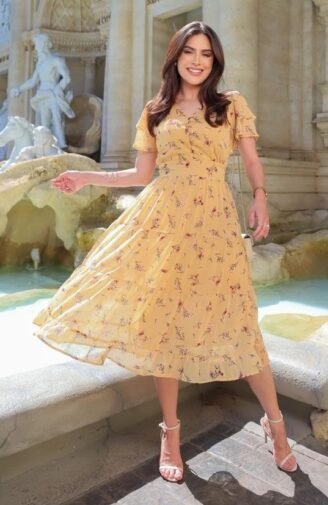 Vestido Lindsey em chiffon premium, forrado – M e G
