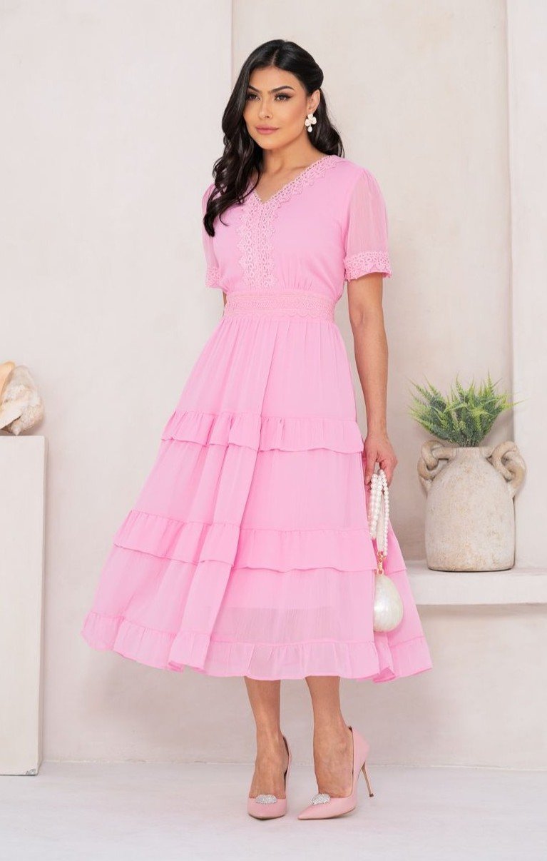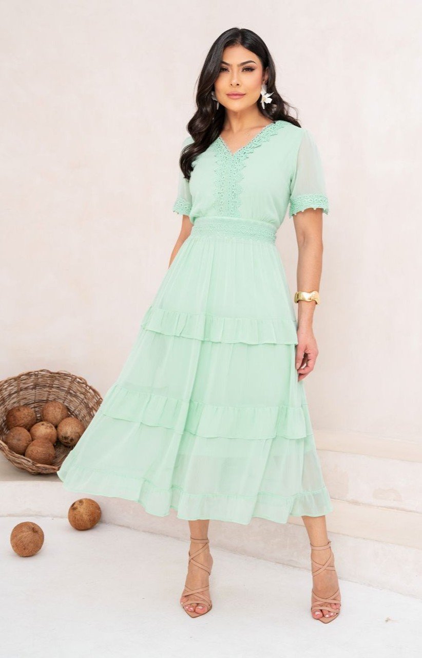 Vestido premium em chiffon, forrado.